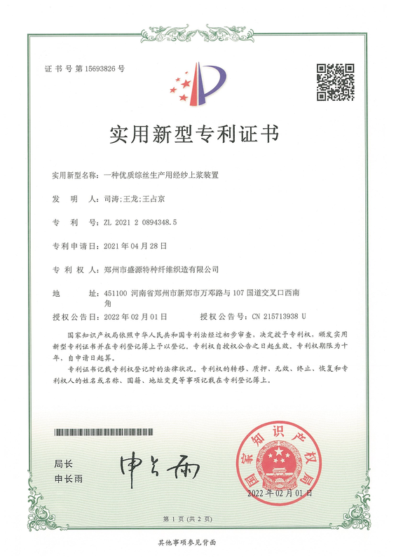 公司在技術(shù)創(chuàng)新領(lǐng)域成果斐然,截至目前,已累計(jì)獲得31項(xiàng)專利證書,涵蓋了特種纖維技術(shù)領(lǐng)域等多個方面。憑借刻苦鉆研的實(shí)力,榮獲“國家高新技術(shù)企業(yè)證書”、“武器裝備質(zhì)量管理體系認(rèn)證證書”、“鄭州市專精特新中小企業(yè)”、“創(chuàng)新型中小企業(yè)”等名譽(yù)。未來,公司將繼續(xù)加大研發(fā)投入,不斷探索創(chuàng)新,力爭在專利領(lǐng)域取得更多突破性的成果,為公司的持續(xù)發(fā)展和行業(yè)進(jìn)步提供強(qiáng)有力的技術(shù)支撐。
